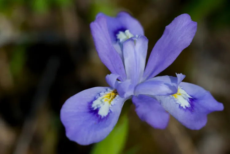 These beautiful native woodland iris (Iris cristata) form low groundcover and are shorter than 12 inches tall. A frilled crest takes the place of the beard on the lower petal. Great for woodland or shady, wet rock gardens.