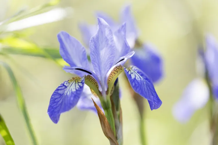 This border or mixed planting choice, Siberian iris (Iris sibirica), produces clumps of showy foliage and delicate flowers. Leaves are attractive after flowering. Rhizomes establish themselves over time and need division every few years to remain robust.