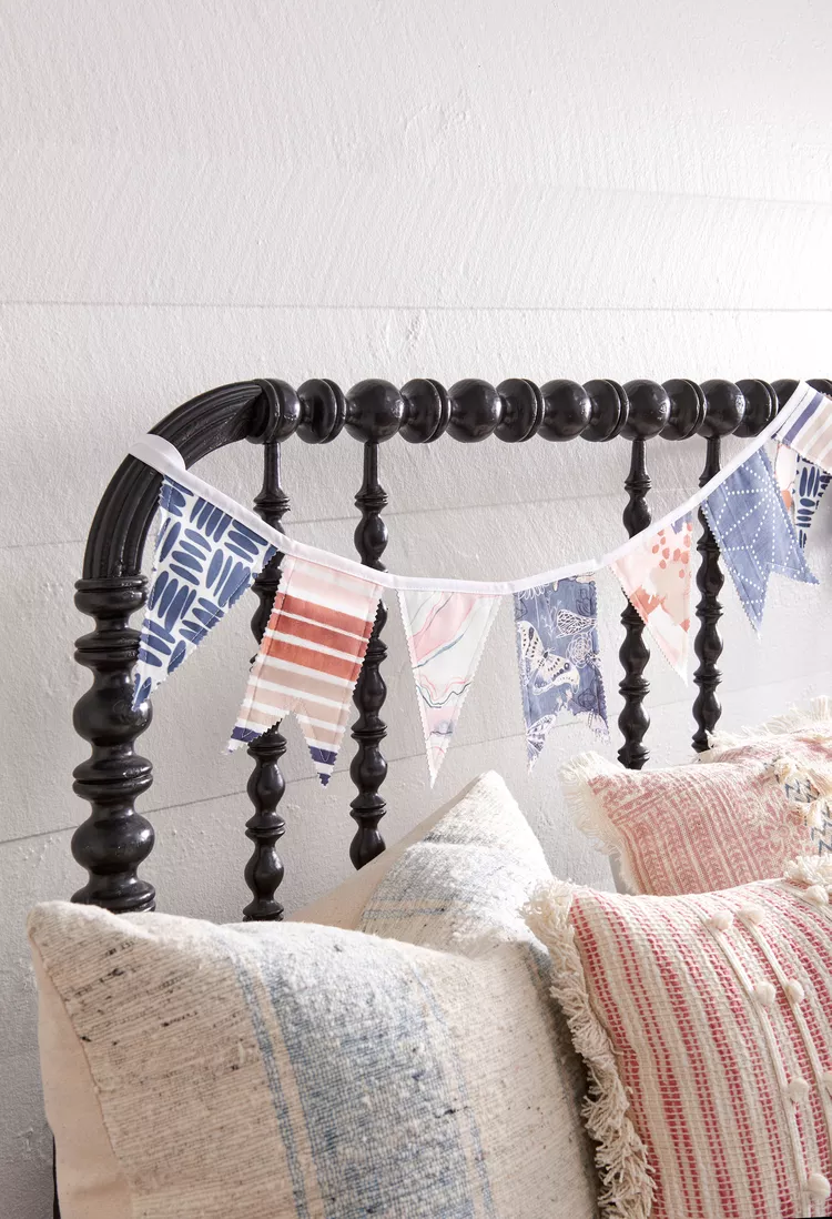 Bunting adds a celebratory splash to parties, play zones, or simply everyday room decor. Glue or sew scraps into triangular flags, and wrap them up with twine or ribbon for a colorful handmade banner.