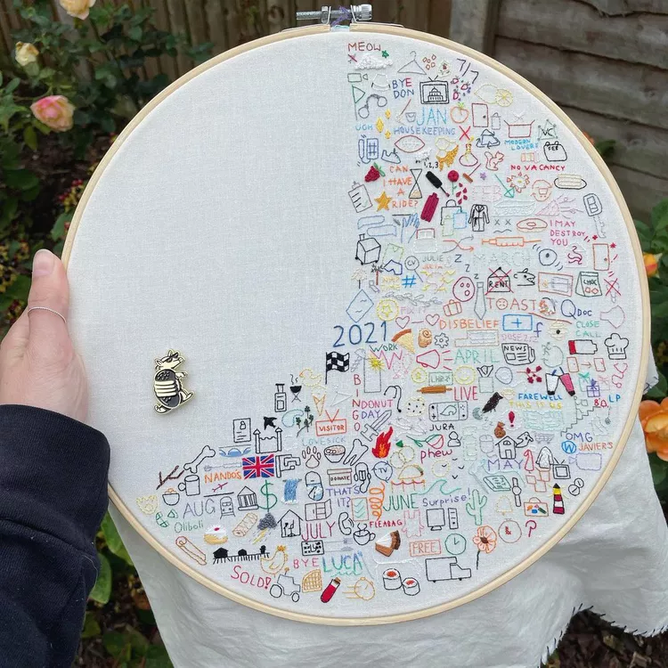 Start a year-long embroidery journal by stitching tiny pictures every day on fabric in a hoop. At the end of the year, you’ll have a beautiful visual diary and incredible stitching skills.