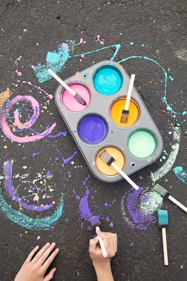 Make washable sidewalk paint with cornstarch, water, and food coloring. Paint your sidewalk with cheerful messages and colorful artwork.