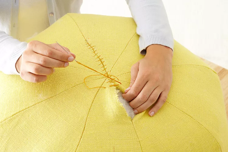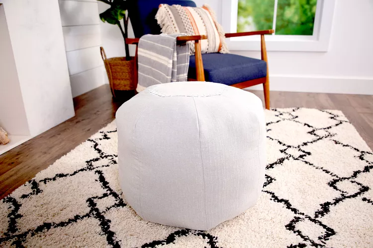 Sew an upholstered pouf ottoman with our easy tutorial for a charming—and affordable—home accessory.