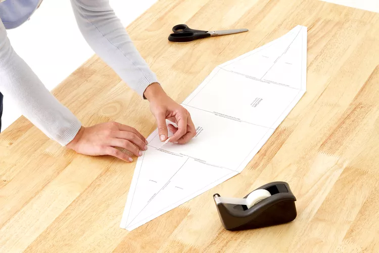 Print and download our free templates. Cut out paper shapes and glue them together—it has to be a rectangle with triangles on either side. Glue the endcap pattern together as well.