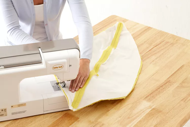 Stitch along the outside edge to the 5″ marks. Join the ends by sewing over the seam allowance.