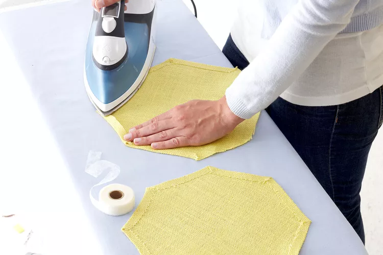 Prevent fraying by ironing fusible-web tape ½″ inside all edges of both octagon pieces, according to the package instructions.